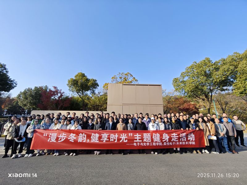 為迎接學院黨代會勝利召開,讓全體教職工在自然中放松身心、在運動中凝聚力量,11月26日下午,電子與光學工程學院、柔性電子(未來技術)學院工會精心策劃“漫步冬韻,健享時光”主題健身走活動,組織全院教師走進羊山公園,共赴一場冬日美景與健康活力的雙向之約。下午三點,參與活動的教師們齊聚公園入口廣場,臉上洋溢著期待與喜悅。學院黨委書記黃麗亞致辭,她表示,此次健身走活動既是響應“全民健身”號召、關愛教職工身心健康的暖心舉措,也是學院以團結奮進風貌迎接黨代會的生動實踐。“希望大家在漫步中欣賞冬景、在同行中增進情誼,把運動帶來的活力與激情,轉化為教書育人、干事創(chuàng)業(yè)的強大動力,共同為學院高質量發(fā)展蓄力賦能。”致辭結束后,教師們邁著矯健的步伐有序啟程,沿著蜿蜒的環(huán)湖步道展開了一場與冬日的親密邂逅。活動結束后,教師們在公園入口處集體合影。此次健身走活動全程約5公里,路程雖不算長,卻讓老師們在繁忙的工作之余,走出了校園、走進了自然,既鍛煉了身體、舒緩了壓力,更增進了彼此間的溝通與情誼。電子與光學工程學院、柔性電子(未來技術)學院工會未來將繼續(xù)聚焦教職工需求,秉持“服務教職工、凝聚向心力”的宗旨,組織更多形式