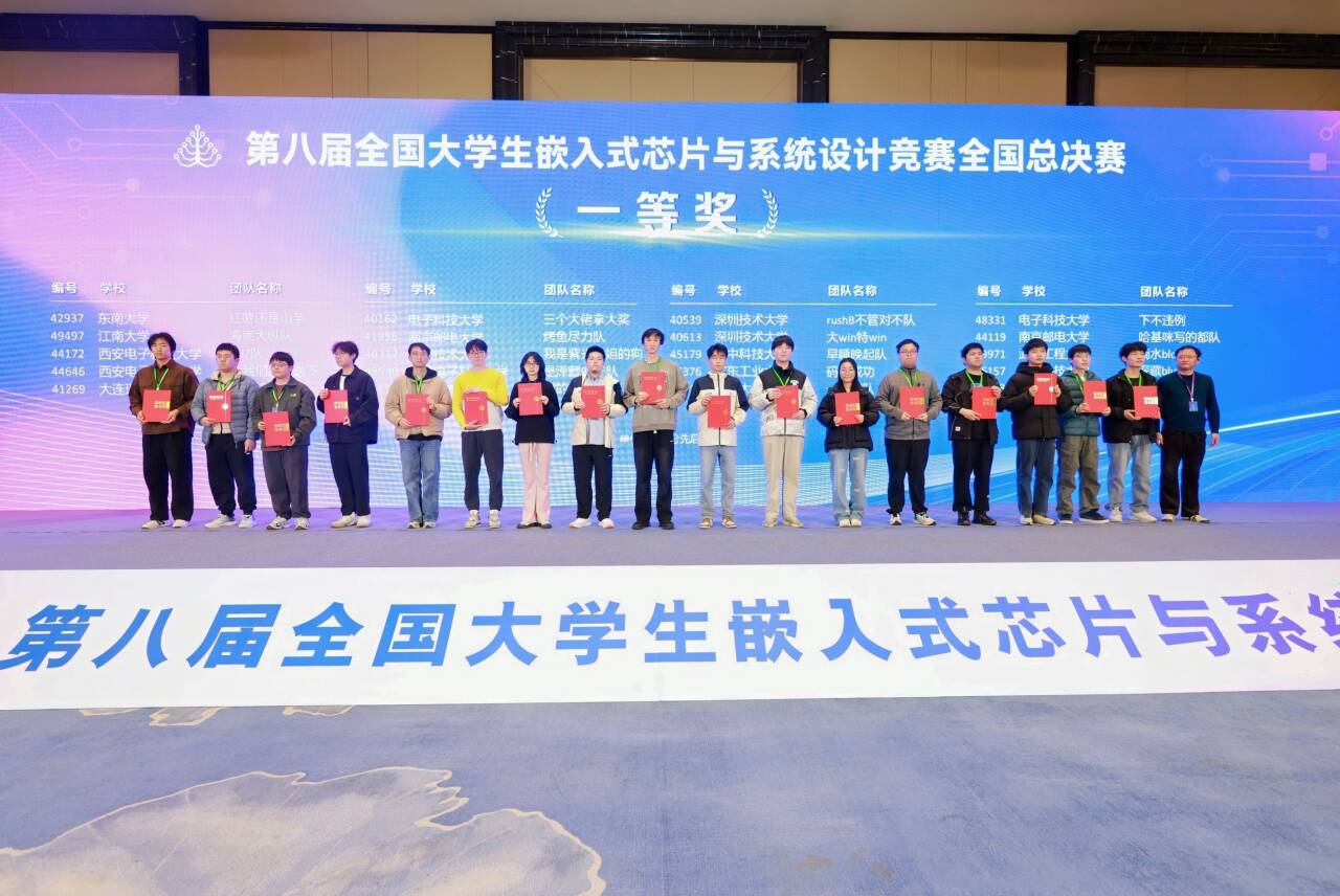 11月30日,2025年全國大學生嵌入式芯片與系統(tǒng)設計競賽-芯片設計賽道決賽與FPGA創(chuàng)新設計賽道決賽在南京落下帷幕。南京郵電大學參賽隊獲全國一等獎8項(芯片設計賽道1項,F(xiàn)PGA賽道7項),國家一等獎數位列全國高校第二名、其中我院學生獲得國家一等獎4項,國家二等獎4項,國家三等獎5項。FPGA創(chuàng)新設計大賽是全國嵌入式芯片與系統(tǒng)設計競賽三個專項賽之一,全國大學生嵌入式芯片與系統(tǒng)設計競賽由中國電子教育學會主辦,旨在提高全國高校學生在嵌入式芯片及系統(tǒng)設計領域、可編程邏輯器件應用領域自主創(chuàng)新設計與工程實踐能力,培養(yǎng)具有創(chuàng)新思維、具備解決復雜工程問題能力且擁有團隊合作精神的優(yōu)秀人才。序號學生姓名學號獲獎等級指導老師1于沛田B24021509國家一等獎郝學元、黃麗亞陶宸涵B240200282曹聞達B23020525國家一等獎郝學元、諶靜李澤B230200183陳奕帆B23090625國家一等獎郝學元、崔國印季子超B240208204胡鑫媛B23020503國家一等獎謝祖帥、郝學元王譯B23021409(撰稿:郝學元 編輯:徐偉 審核:諶靜)